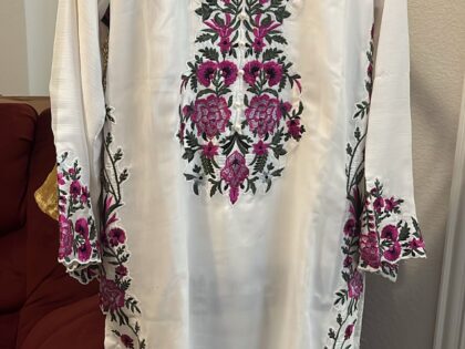 Elegant White Chiffon Embroidered 3-Piece Suit – (Medium)